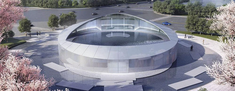 本次活動旨在弘揚習近平生態(tài)文明思想,匯聚綠色發(fā)展新動能,倡導回歸自然綠色簡約新生活。中國(上饒)建筑科技文化館作為活動會場,秉承著綠色建筑理念,以促進綠色建筑新技術、新設備、新材料應用為目的,順應了綠色、生態(tài)、健康發(fā)展趨勢,與活動宗旨高度契合。整個建筑科技文化館縈繞在水霧之間,環(huán)道頂點的一汪清水凌駕于整座360度侵入式投影環(huán)幕之上,當選手站在舞臺中央之時,水光穹頂折射出溢彩柔光,仿佛置身于水天之間,科技與夢幻融合,歌聲與希冀共飛。