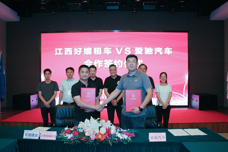 8月25日晚,江西好嬉租車與愛馳汽車,在宏盛建業(yè)上??偛颗e行合作簽約。好嬉租車第一期將采購100臺愛馳U5型號的新能源車作為主打車型投入運營。
