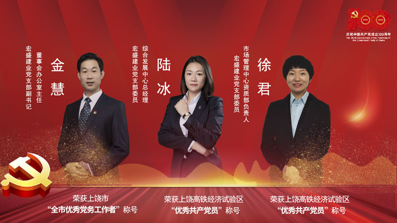 宏盛建業(yè)黨支部副書記、董事會辦公室主任金慧榮獲“上饒市優(yōu)秀黨務(wù)工作者”稱號,宏盛建業(yè)黨支部委員、綜合發(fā)展中心總經(jīng)理陸冰和宏盛建業(yè)黨支部委員、市場管理中心資質(zhì)部負(fù)責(zé)人徐君榮獲高鐵經(jīng)濟試驗區(qū)“優(yōu)秀共產(chǎn)黨員”稱號。